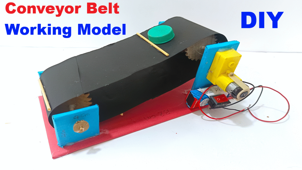 This movement turns the belt loop, causing materials placed on the belt to move forward automatically — just like in factories, airports, and packaging plants.