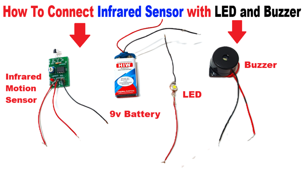 - Move your hand or walk in front of the sensor — the LED light glows and buzzer beeps when it detects motion.