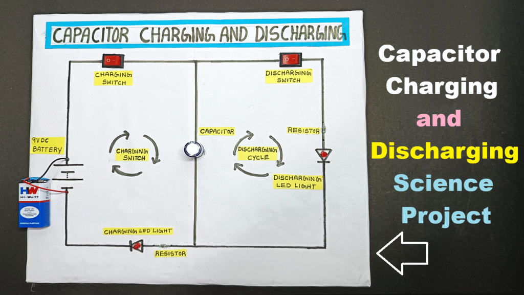 how to make capacitor charging and discharging working model – class 9 / class 10 / class 12