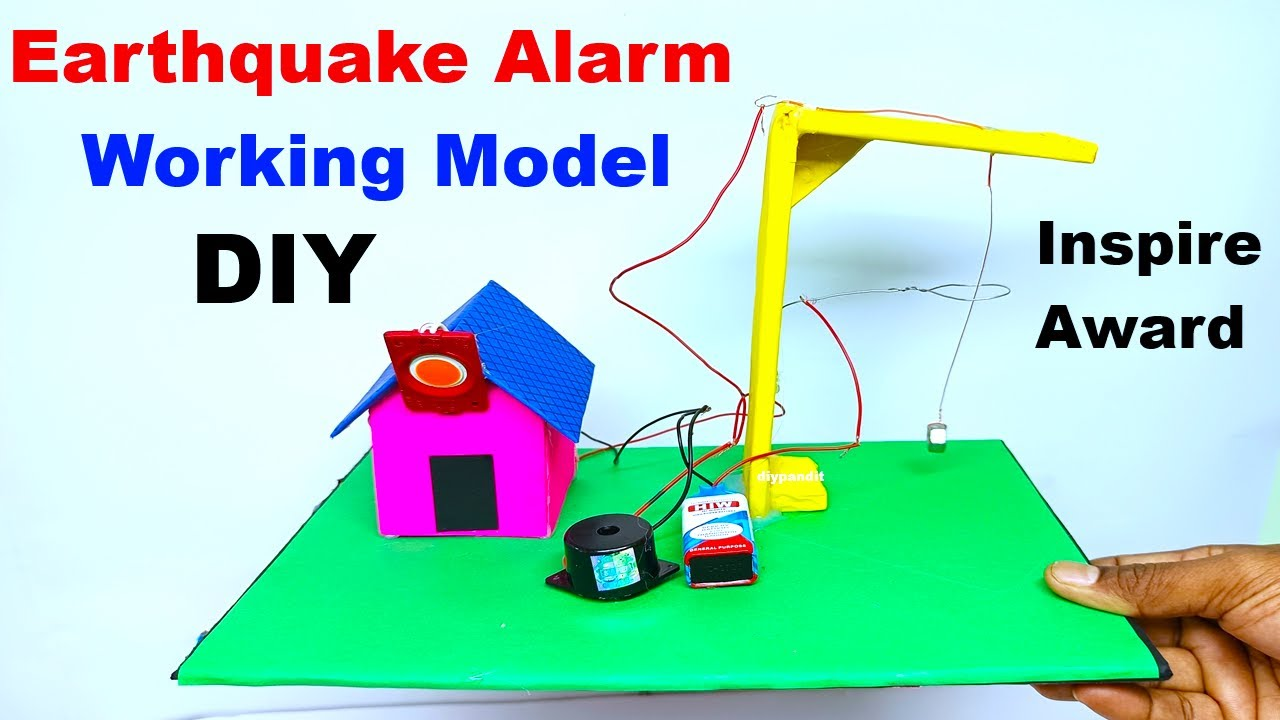 The earthquake alarm model demonstrates a simple way to detect ground vibrations and alert people.