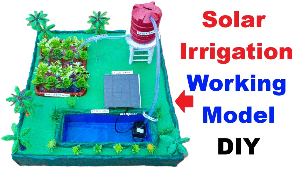 Welcome to this DIY Solar Irrigation Working Model — a perfect science project for exhibitions that demonstrates how solar energy can be used to power a water pump for efficient irrigation.