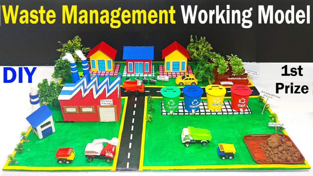 This Waste Management Working Model demonstrates how waste is collected, segregated, recycled, composted, and finally disposed of in landfills in a planned and eco-friendly way.